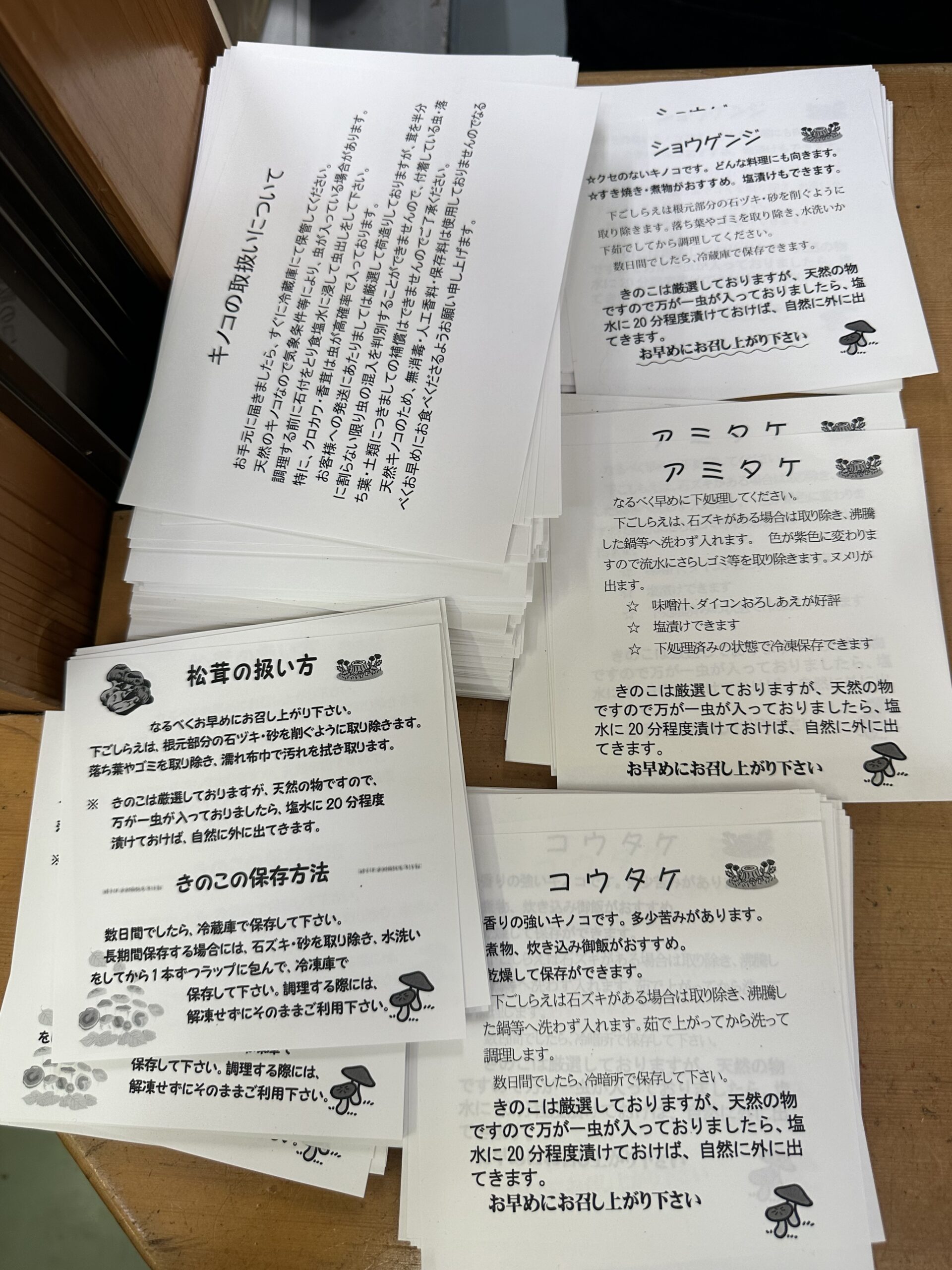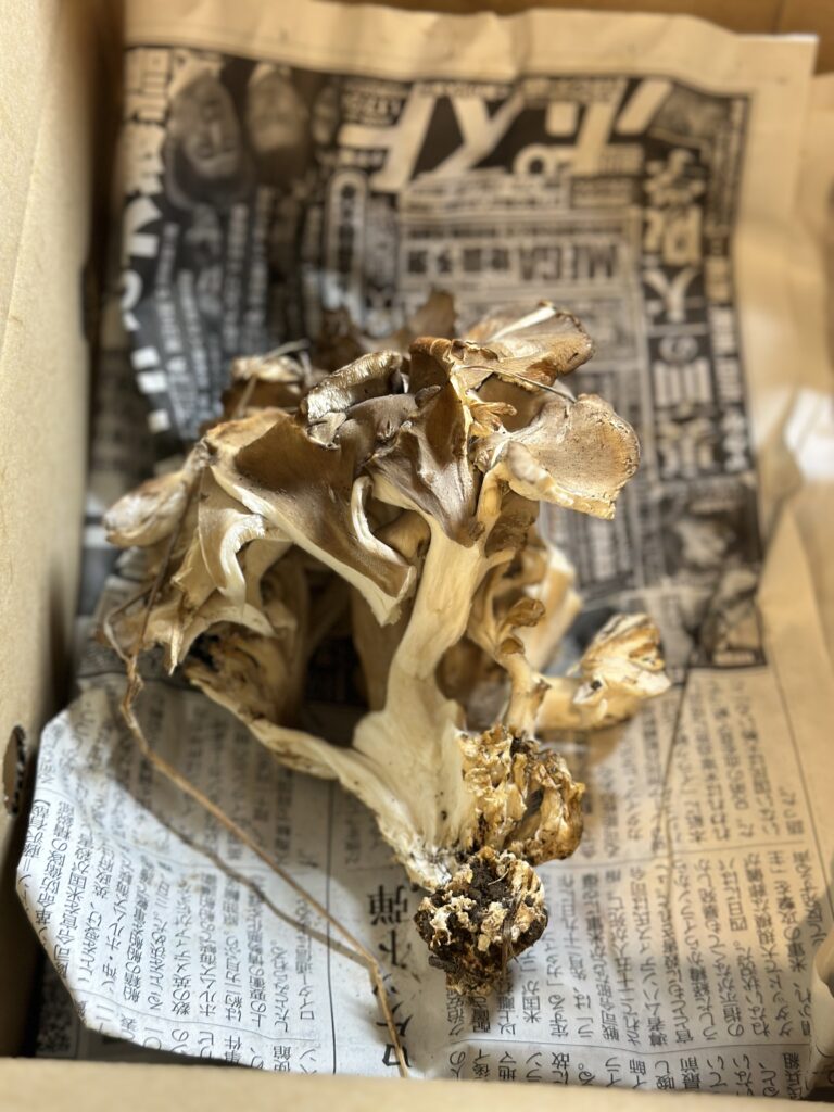 これだけの量の天然きのこが揃っているところを見たのは、初めてでした。松茸はおいといて、ショウゲンジ、マイタケ、クリタケをたっぷり購入し、地元に住む友人に「今後も天然舞茸があったら着払いでお願いします」とお願いして帰りました。